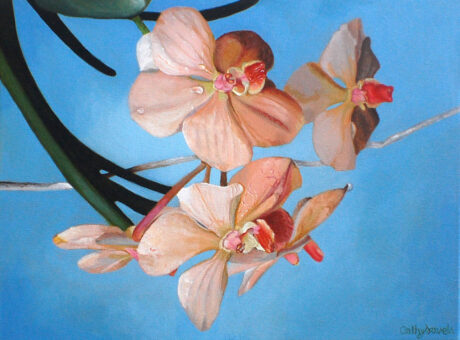 Pink Orchid with Raindrops Acrylic Painting