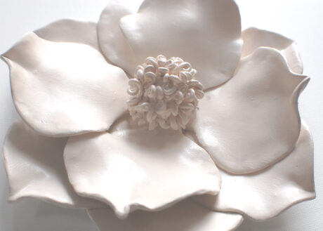 Magnolia Flower Clay Wall Sculpture in Cream