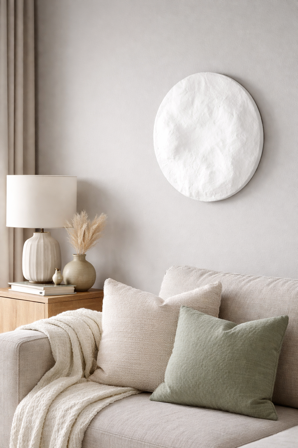 Lunar Celestial Textured Wall Art Hand-Sculpted Plaster Relief Sculpture Round Minimalist 3D Wall Hanging