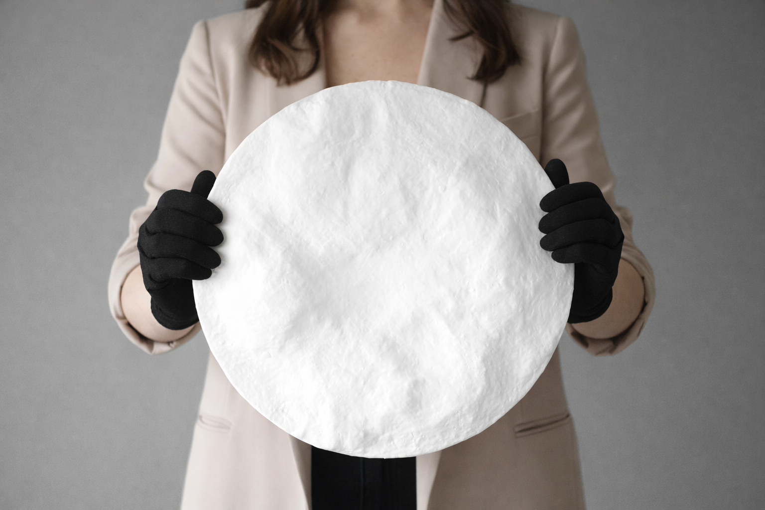 Each round artwork is a unique relief sculpture, shaped by hand to create subtle craters, valleys, and highlights that play beautifully with light. The minimalist white finish allows the intricate texture and form to take center stage, making it a sophisticated statement piece for any modern, contemporary, Wabi-Sabi, Japandi, or minimalist interior.