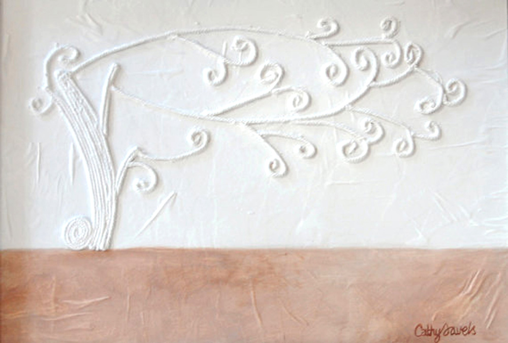 Bring a touch of serene elegance and unique texture to your home with this captivating whimsical tree wall art. Crafted with a beautiful three-dimensional relief, this piece features a charming, stylized tree rendered in delicate white texture against a subtly textured white background. The bottom portion of the canvas provides a grounding, earthy contrast in a soft copper hue.