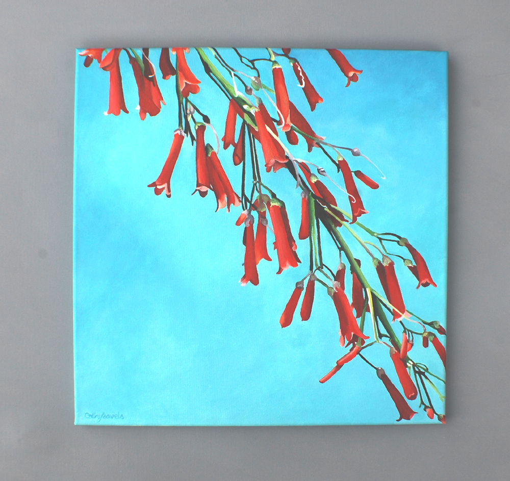 After my trip to Zambia where I had many enjoyable moments sitting by the pool, this red bell flower was overhanging the pool and creating a beautiful color scheme that screamed to be painted.