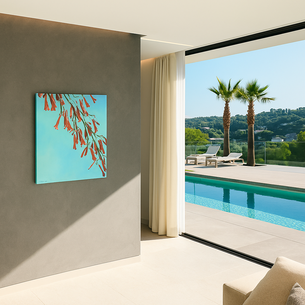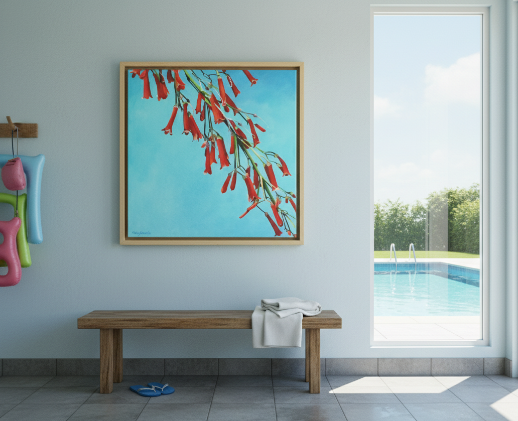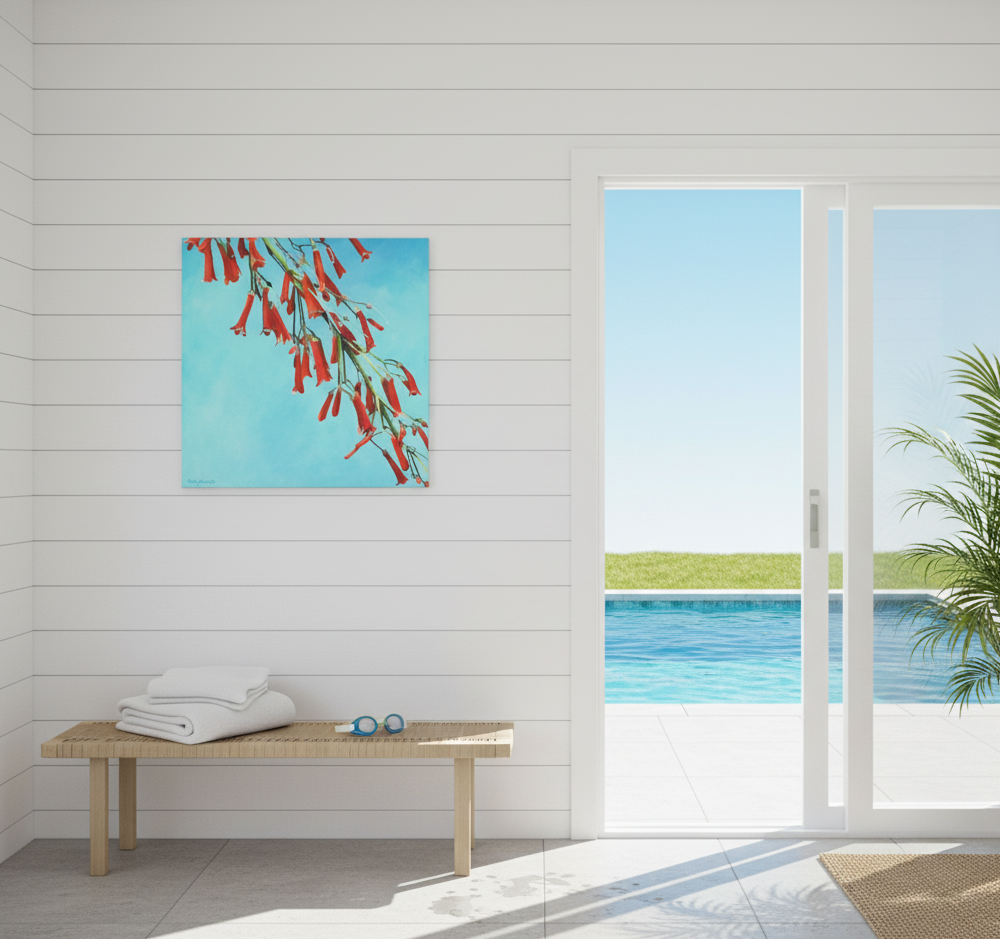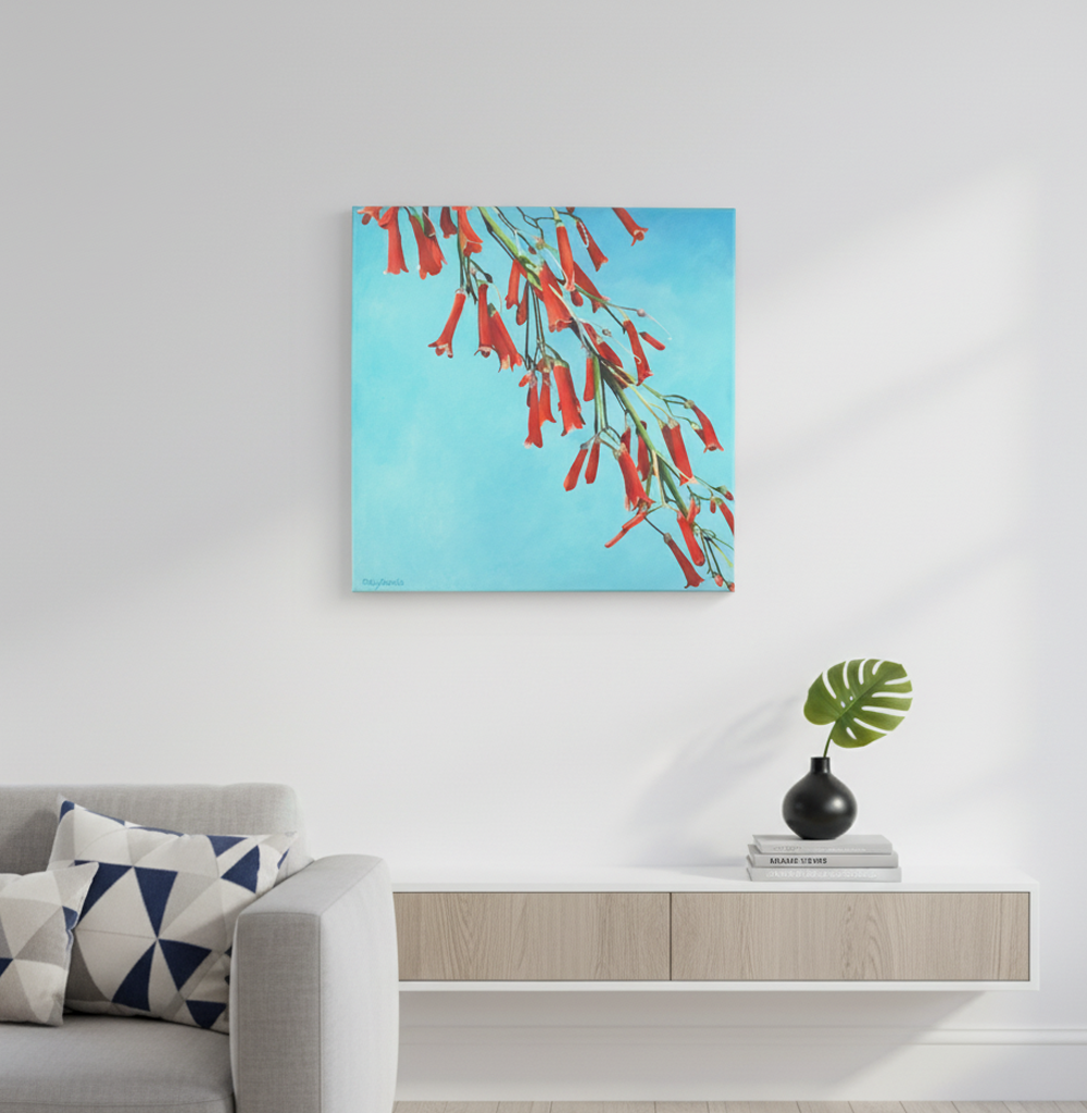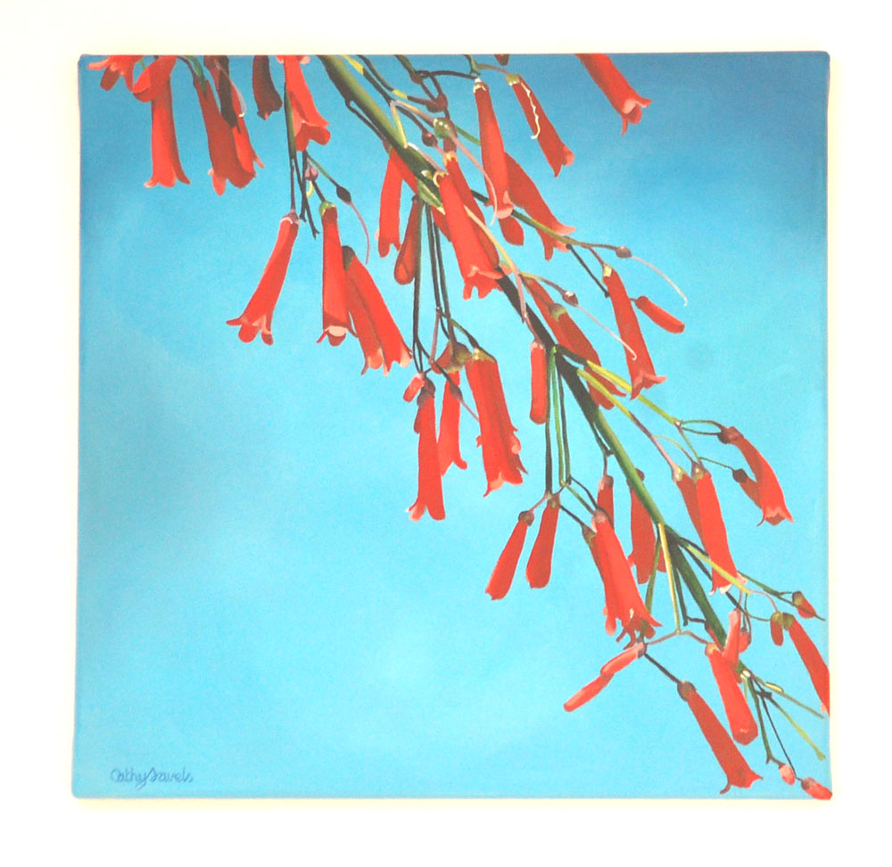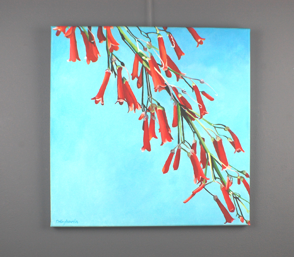 Red Bell Firecracker Flowers Art Painting on Turquoise