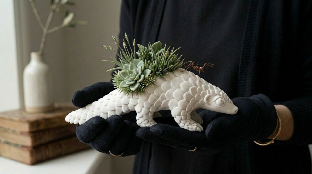 This pangolin fine art sculpture captures the quiet elegance of one of nature’s most extraordinary animals. Carefully sculpted with intricate overlapping scales and a graceful natural posture, the piece highlights the unique form that makes the pangolin unlike any other mammal.