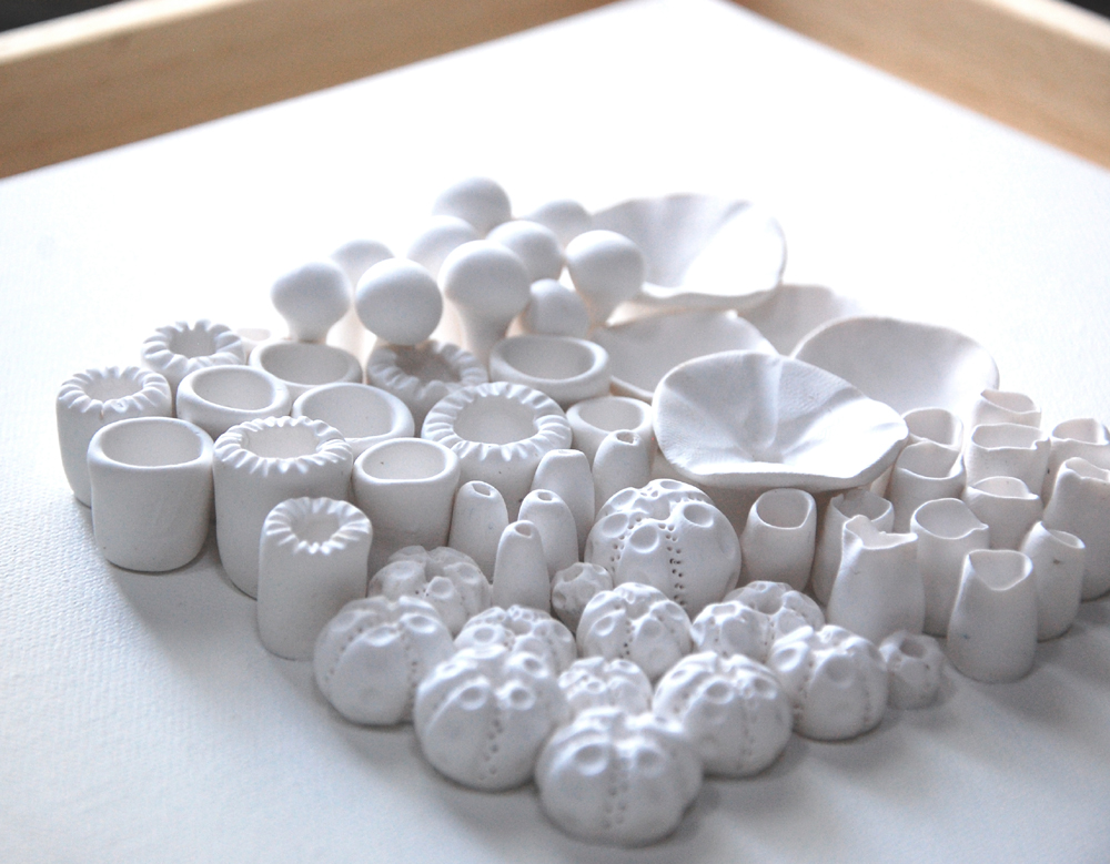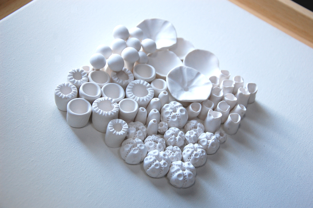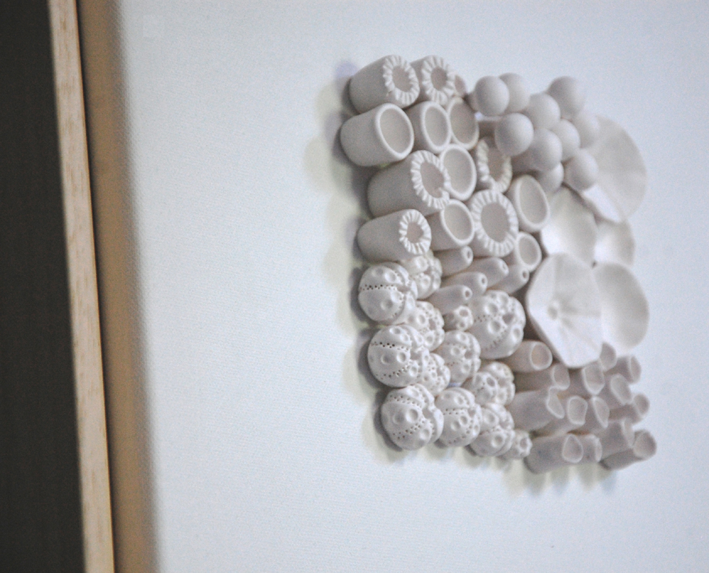 Dimensional Coral Reef Wall Art, Framed Clay Sculpture Minimalist Coastal Decor