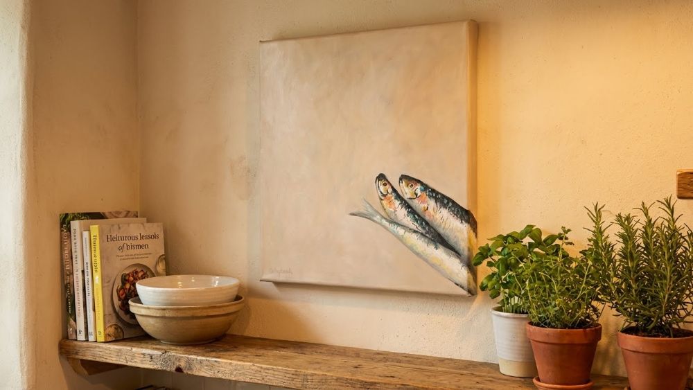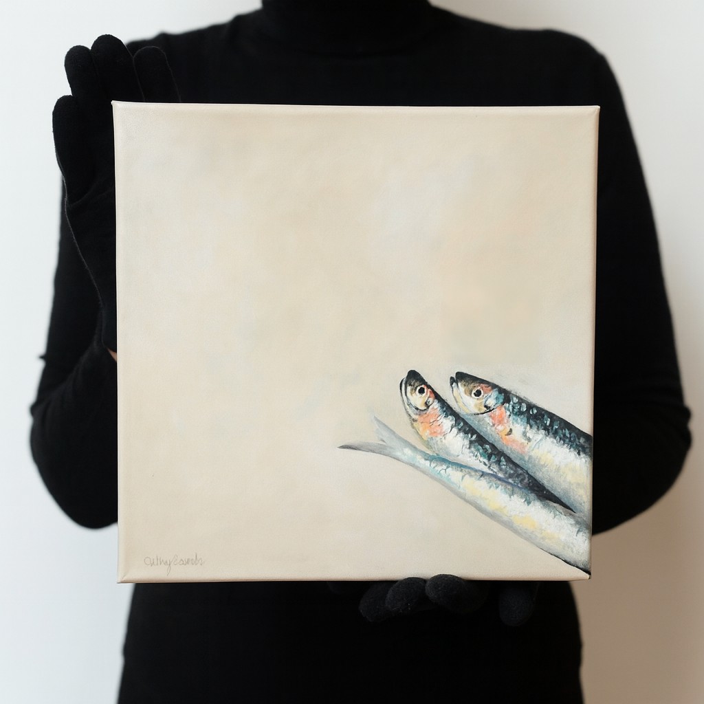 Add a splash of coastal charm and quirky fun to your home with this delightful original painting of three sardines!