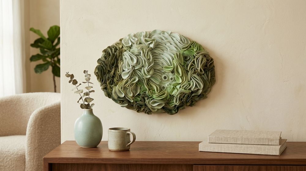 Moss Green Wall Art Botanical Clay Sculpture: Organic Modern Dimensional Decor Contemporary Design