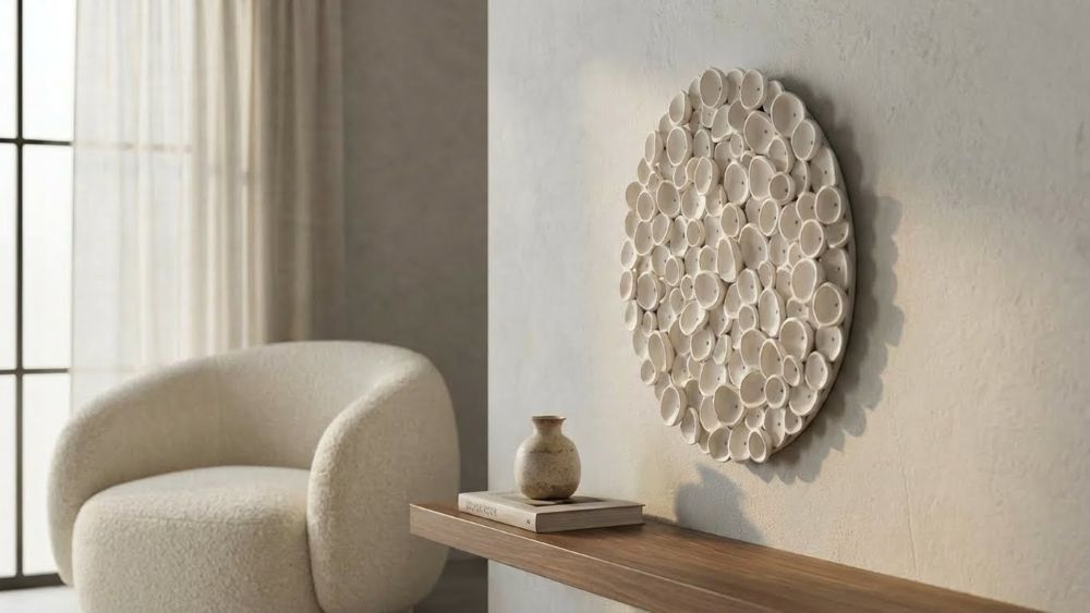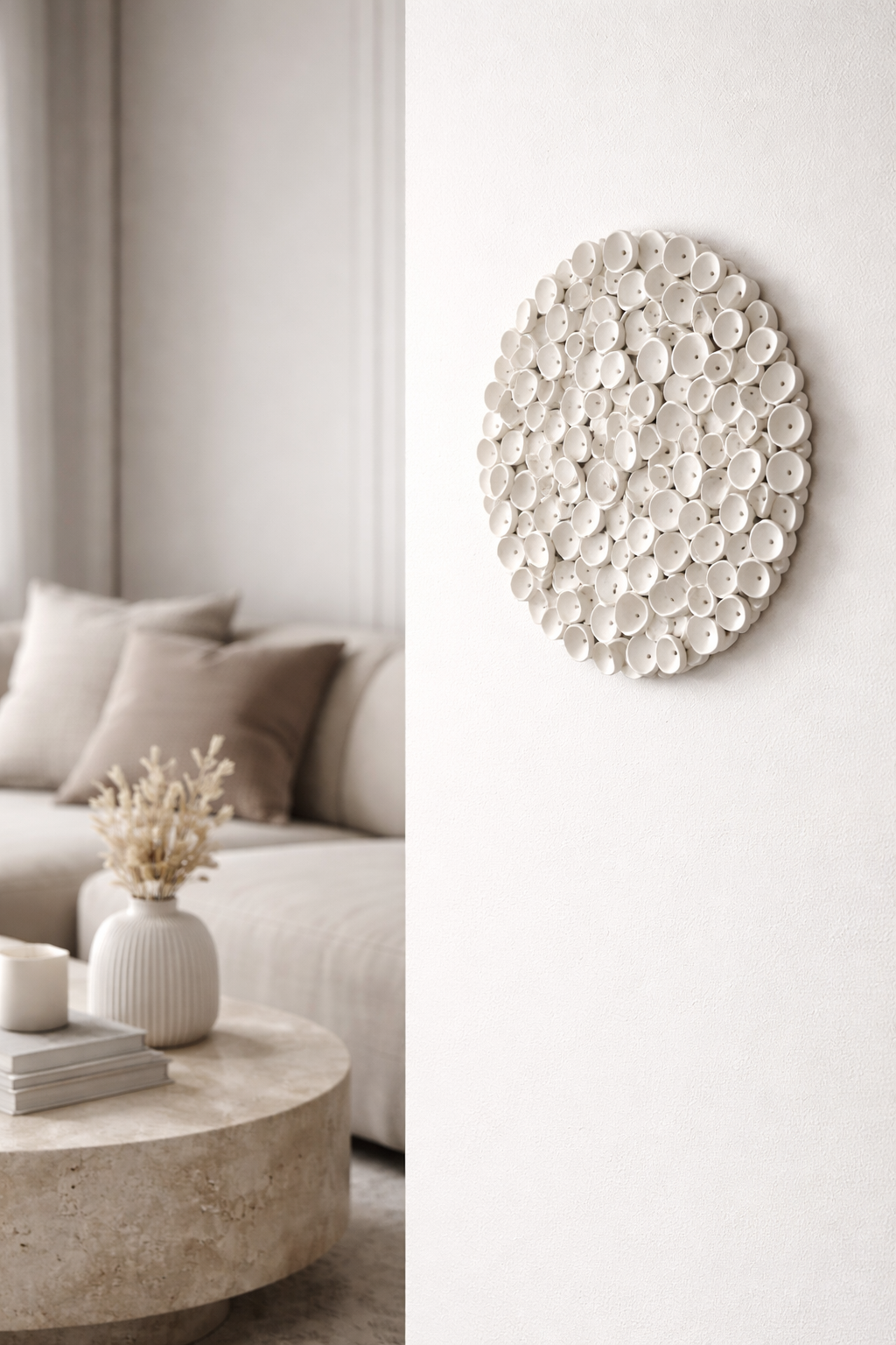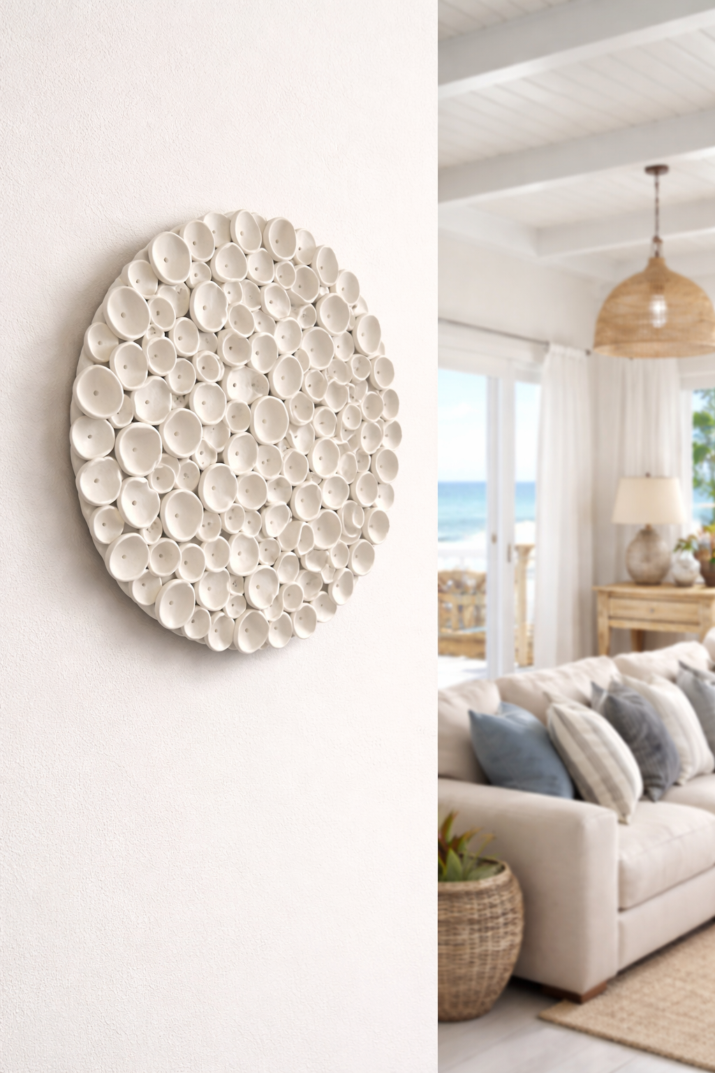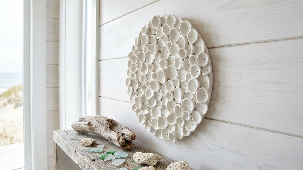 Round Coral Clay Nautical Wall Art Sculpture in Soft Cream