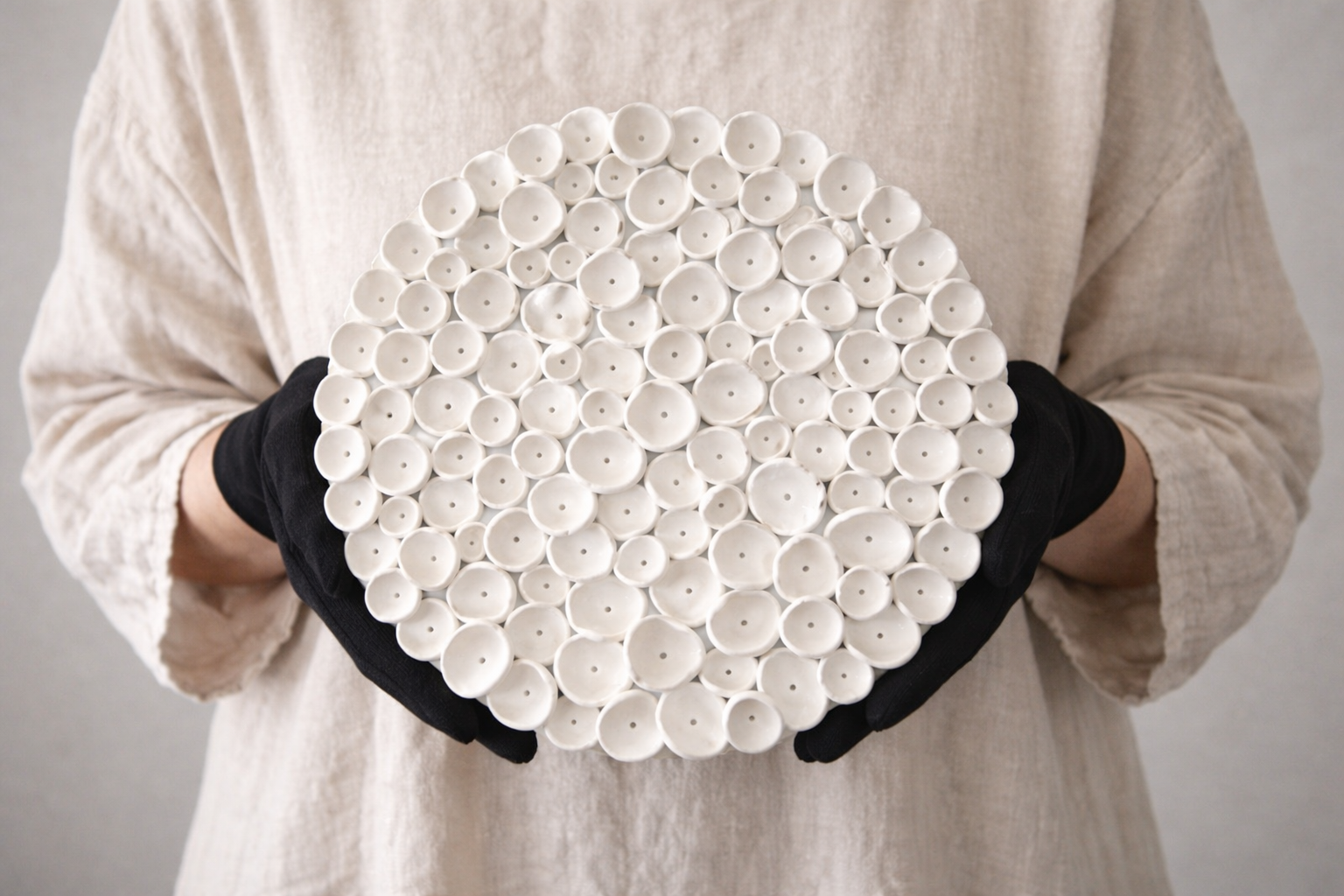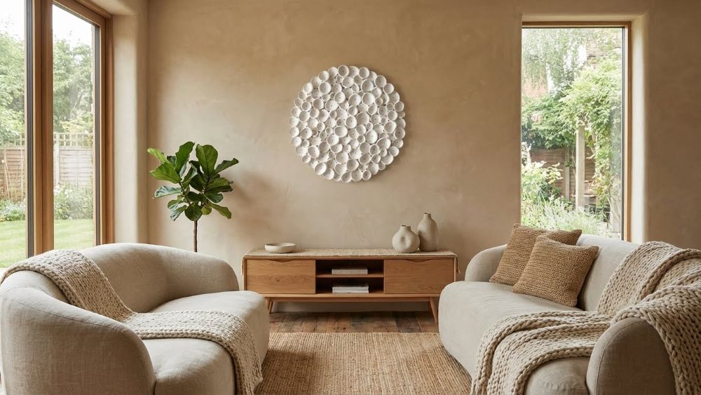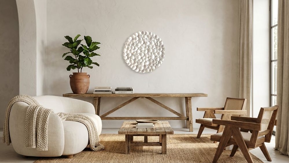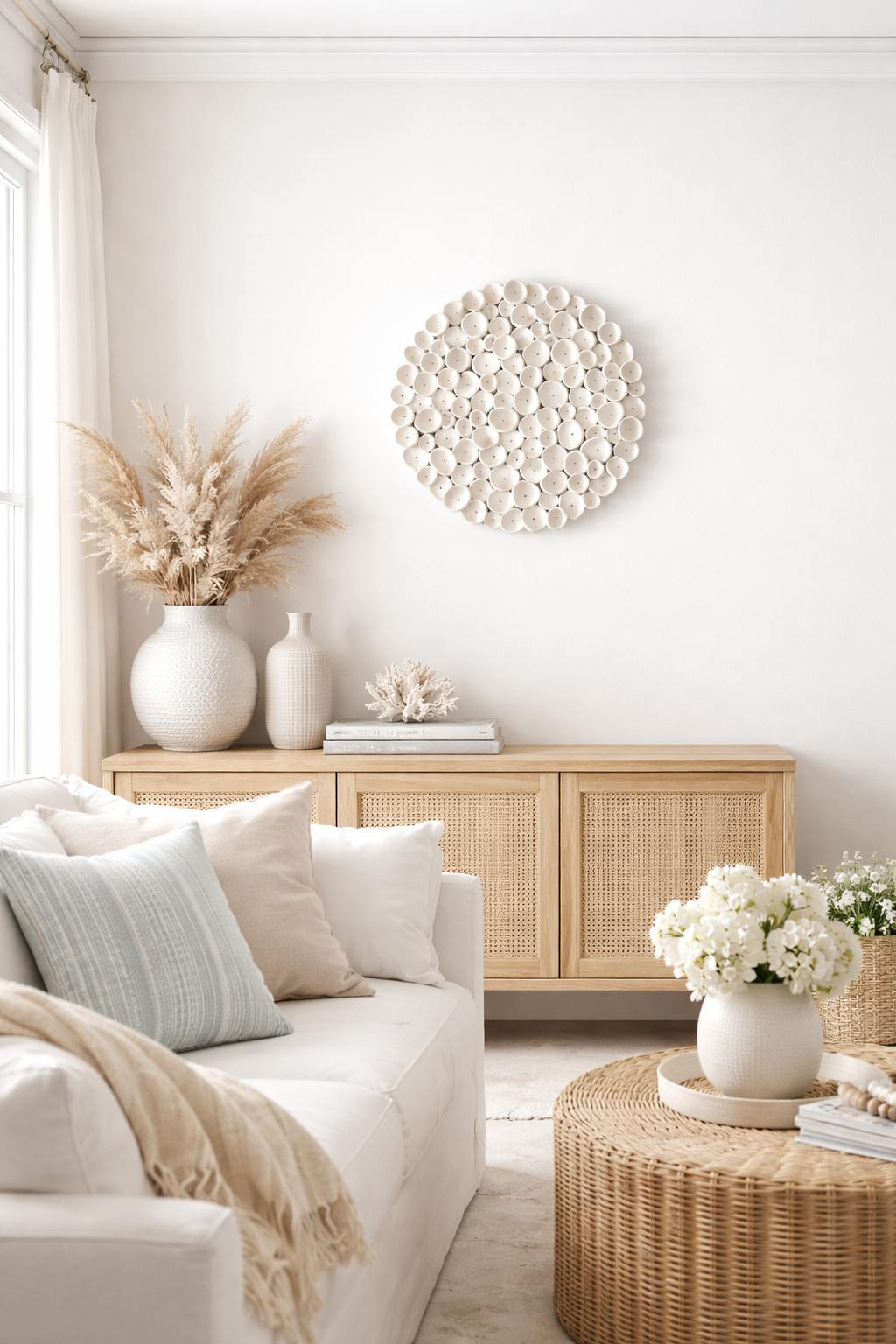 Round Coral Clay Nautical Wall Art Sculpture in Soft Cream