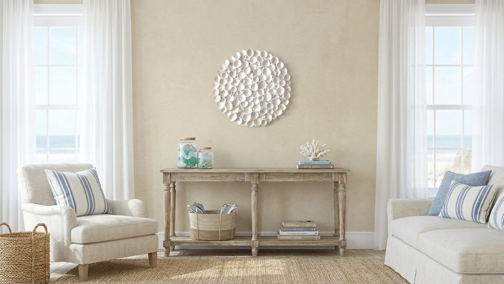 Representing sea textures in soft cream clay, this round clay nautical wall art sculpture is the perfect decor for a beach house or just because you love the ocean. The wall hanging will bring texture into your home in a simple and understated way.