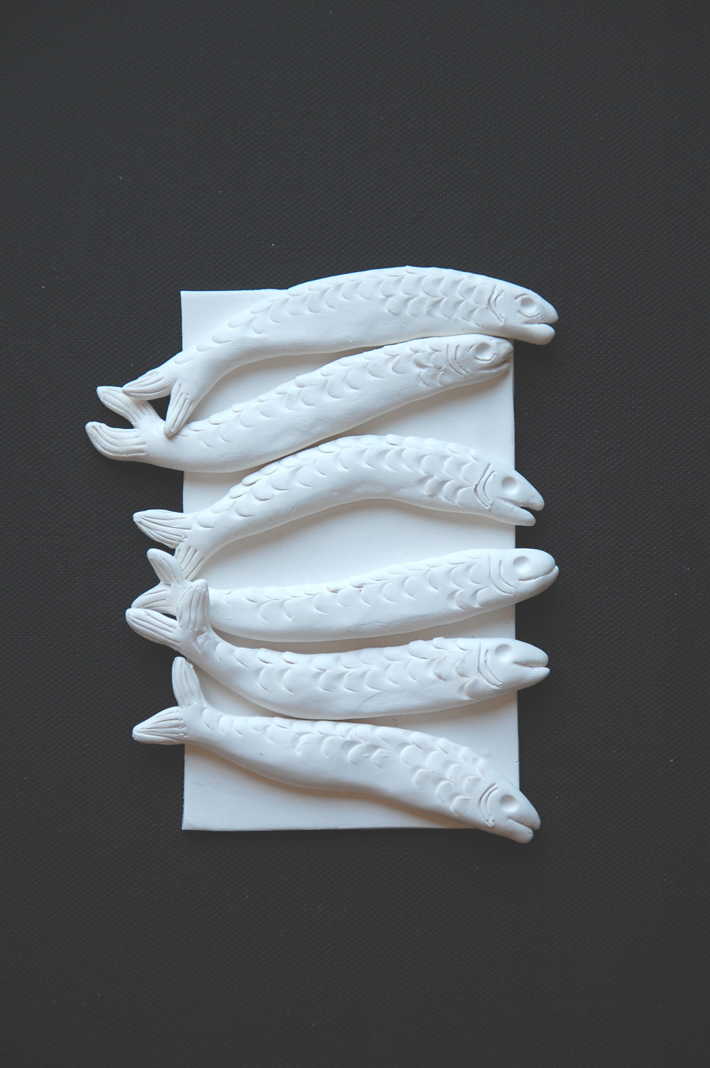 Sardine Wall Art, Coastal Grandmother & Tinned Fish Trend Decor, White Clay Fish Sculpture